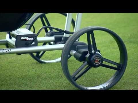 Bei ausgeschaltetem Caddy sind die Räder im automatischen Freilauf. Der Trolley kann problemlos manuell geschoben oder gezogen werden.